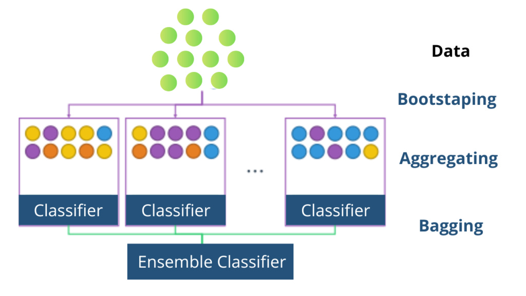 Therefore, in the earlier articles, we showed how different methods may be used to predict a class and provide the corresponding properties of that class. An ensemble learning method called bagging integrates the learning of several models to improve the overall performance. It enhances model stability and lessens overfitting. There are two steps involved in bagging: Aggregation and Bootstrapping.